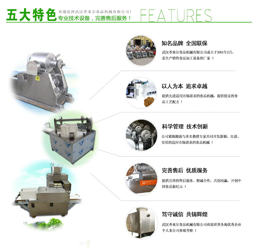 武漢香來(lái)爾食品機(jī)械有限公司成立于2001年2月,是生產(chǎn)銷售休閑食品加工設(shè)備的廠家。公司緊跟市場(chǎng)潮流與華工、華農(nóng)多名共同開(kāi)發(fā)新穎、實(shí)用的適應(yīng)市場(chǎng)需求的食品機(jī)械,自有車、刨、鉆、銑、剪板、折彎等先l進(jìn)機(jī)床100多臺(tái) 套。7年誠(chéng)信通會(huì)員,產(chǎn)品出口拉美、非洲、東南亞、歐洲等很多國(guó)家和地區(qū),國(guó)內(nèi)很多食品企業(yè)都是我們的合作伙伴。目前公司專門(mén)設(shè)立一個(gè)的售后 服務(wù)班子,在公司逐步發(fā)展強(qiáng)大的過(guò)程中,一直堅(jiān)持售后服務(wù)的同步發(fā)展,精良的食品設(shè)...